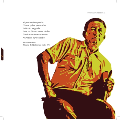 50 ANOS DE REPENTE O poeta sofre quando Vê um pobre passarinho Solitário na gaiola Sem ter direito ao seu ninho São irmãos no sentimento O poeta e o passarinho. Otacílio Batista Natural de São José do Egito - PE 40 4141