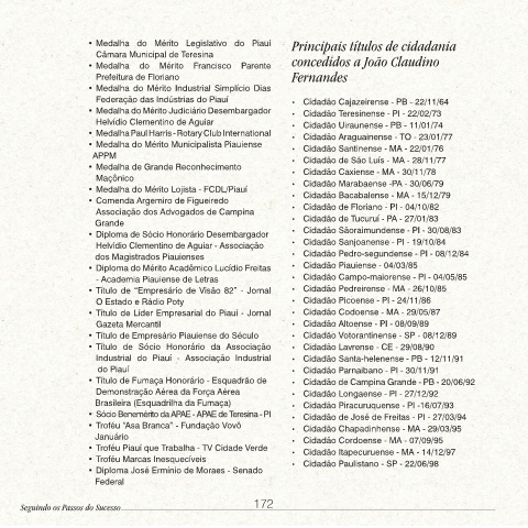 •  Título de Empresário Piauiense do Século                       •  Cidadão Votorantinense - SP - 08/12/89