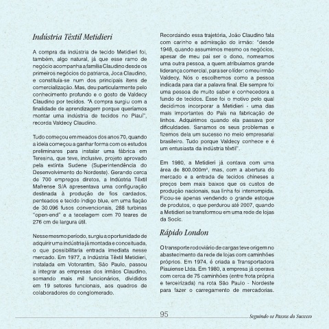 Indústria Têxtil Metidieri Recordando essa trajetória, João Claudino fala