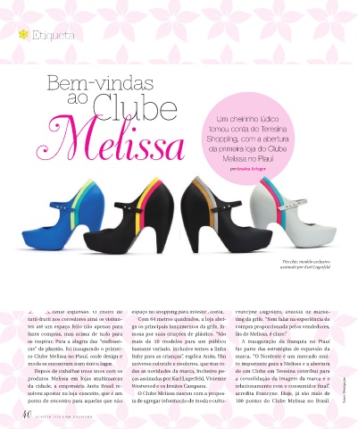 solveu apostar na loja-conceito, que é um o Clube melissa nasceu com a propos- acredita Francyne. Hoje, já são mais de Fotos: Divulgação